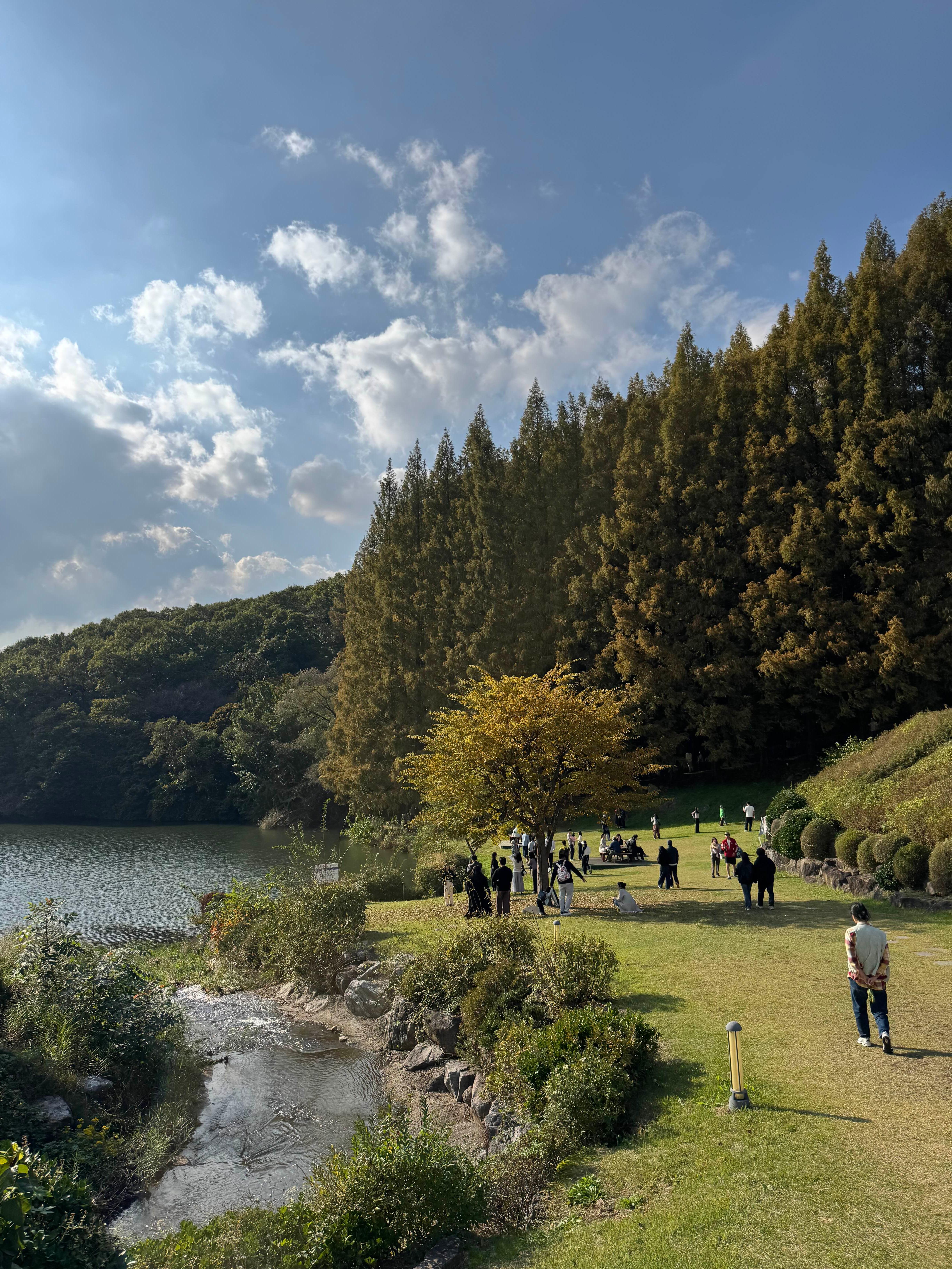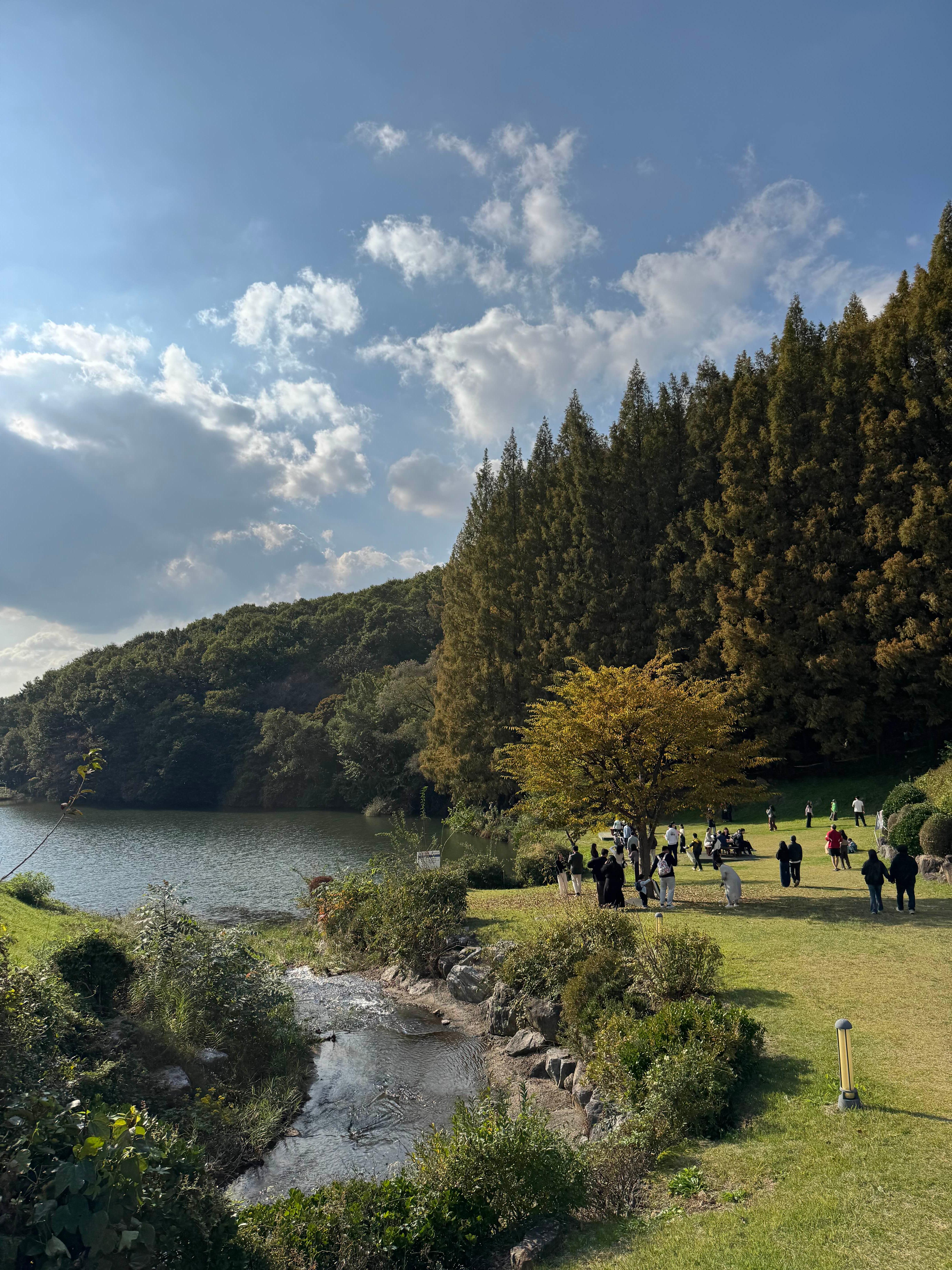 한국외대 용인캠퍼스 안의 명수당은 단풍 명소로 유명한 장소지만, 실제로 방문해보니 계절에 따라 완전히 다른 분위기를 보여주는 곳이었다. 특히 단풍이 들기 전의 푸른 숲과 이국적인 나무들이 만들어내는 풍경이 생각보다 훨씬 더 매력적이었다.