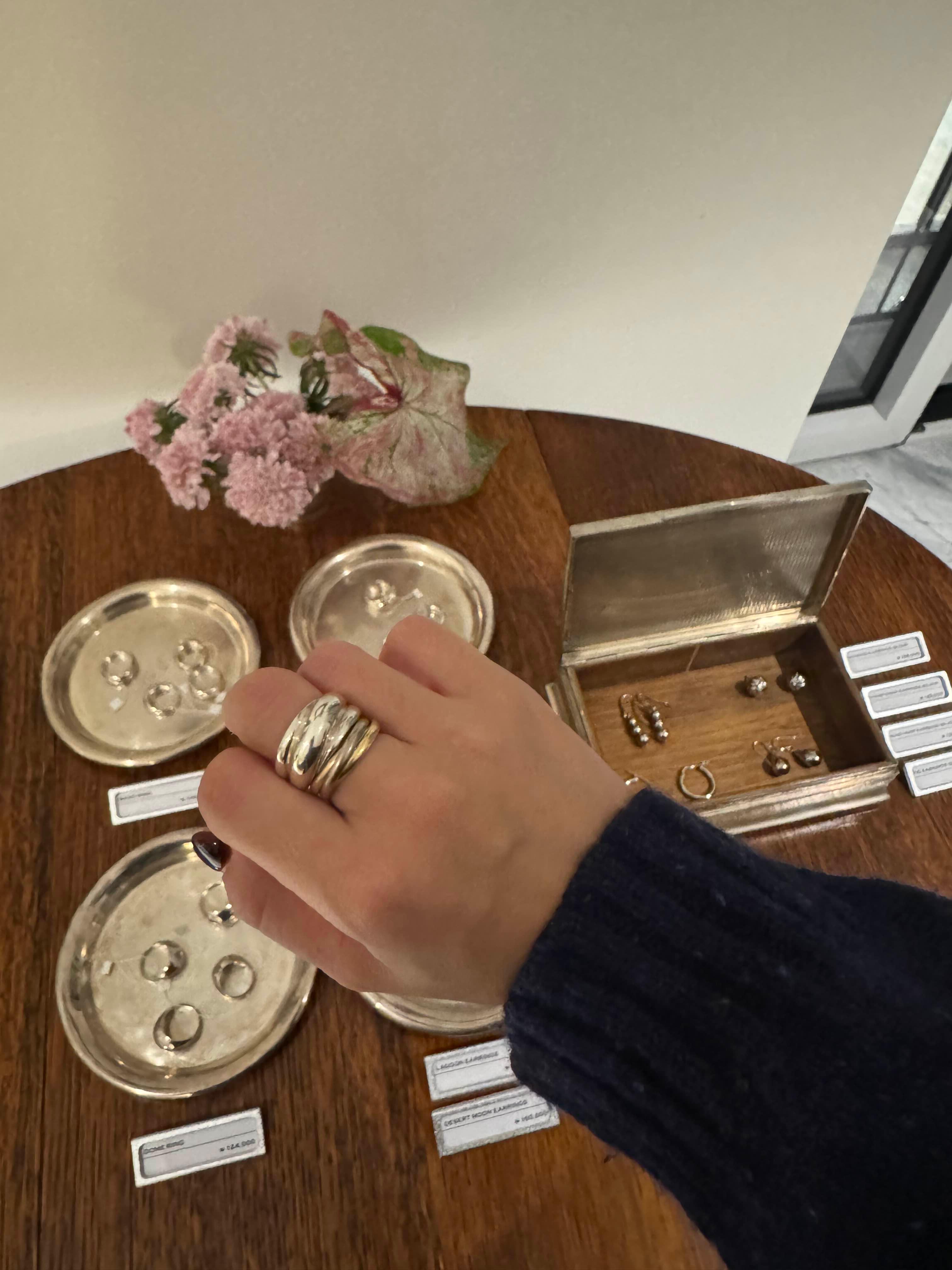 사진으로만 봤을 때는 “자주 손이 갈까?” 싶었는데, 직접 껴보니 착용감이 훨씬 좋고 존재감도 예쁘게 잡히더라고요. 까르띠에 트리니티 링과 레이어드해도 찰떡처럼 잘 어울렸습니다. 11호와 13호 사이에서 고민하다가 11호로 구매했고, 반지대가 두꺼운 편이라 평소보다 한 사이즈 업 추천드립니다.