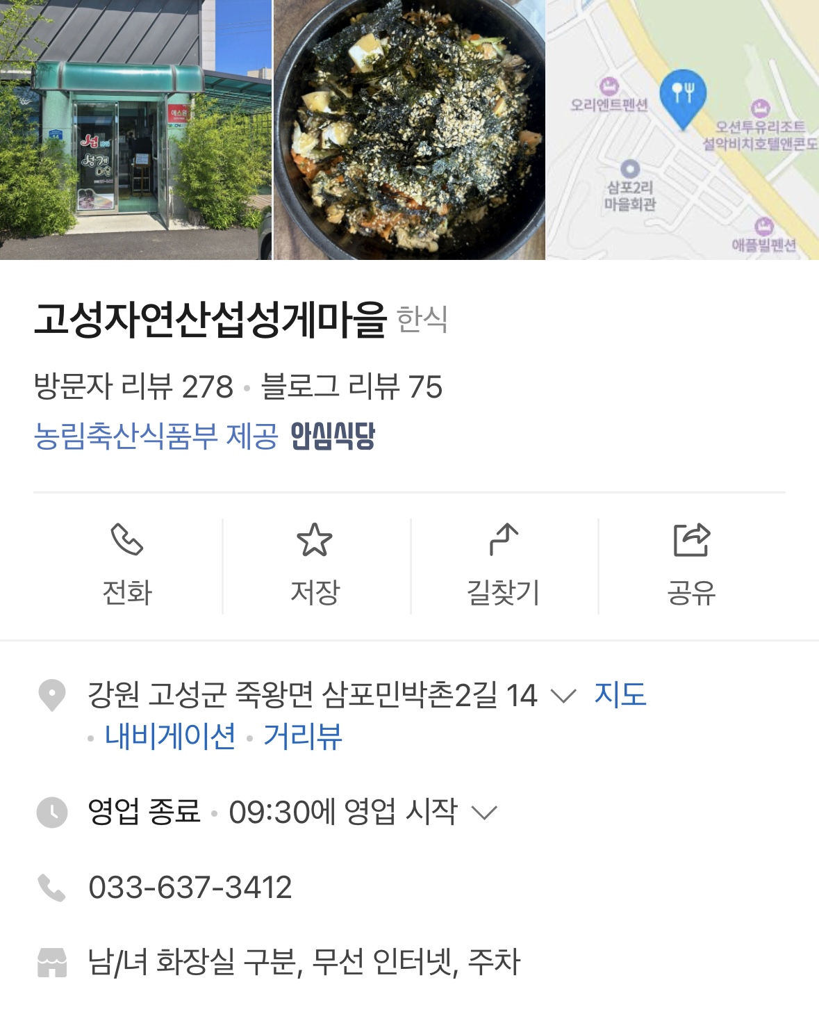 📍주소 : 강원도 고성군 죽왕면 삼포민박촌2길 14